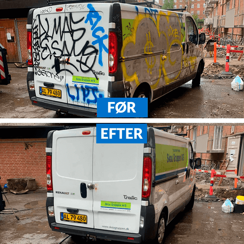 Når der først er blevet udført graffiti et sted, ser man ofte, at der hurtigt kommer yderligere graffiti til. Men jo hurtigere og oftere billeder, tekst og symboler bliver fjernet fra de udsatte vægge og overflader, desto mindre vil risikoen være for yderligere hærværksforsøg. Netop derfor skal du tage kontakt til os hurtigst muligt, så vi kan komme graffitien til livs og sende et stærkt signal om, at graffiti ikke er velkommen på dine overflader.